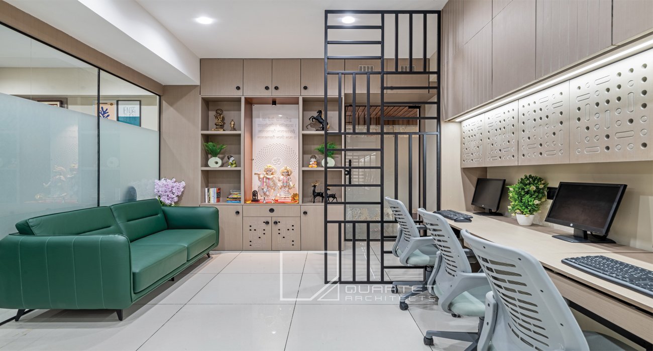 This contemporary office design for a Chartered Accountant (CA) firm achieves an ideal equilibrium between professionalism and comfort, fostering an environment that promotes...